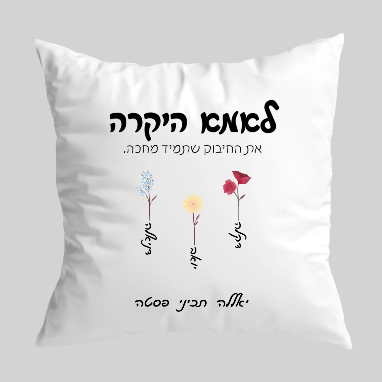 כרית נוי בעיצוב אישי לסבתא – מתנה מרגשת עם שמות בני המשפחה