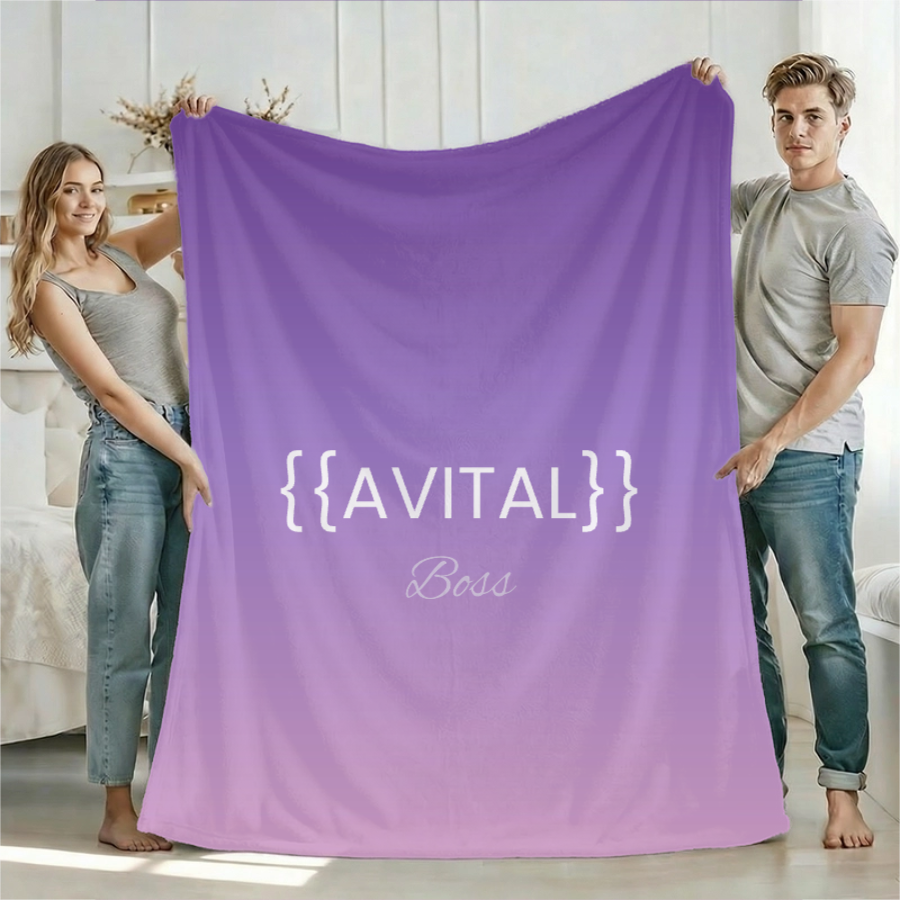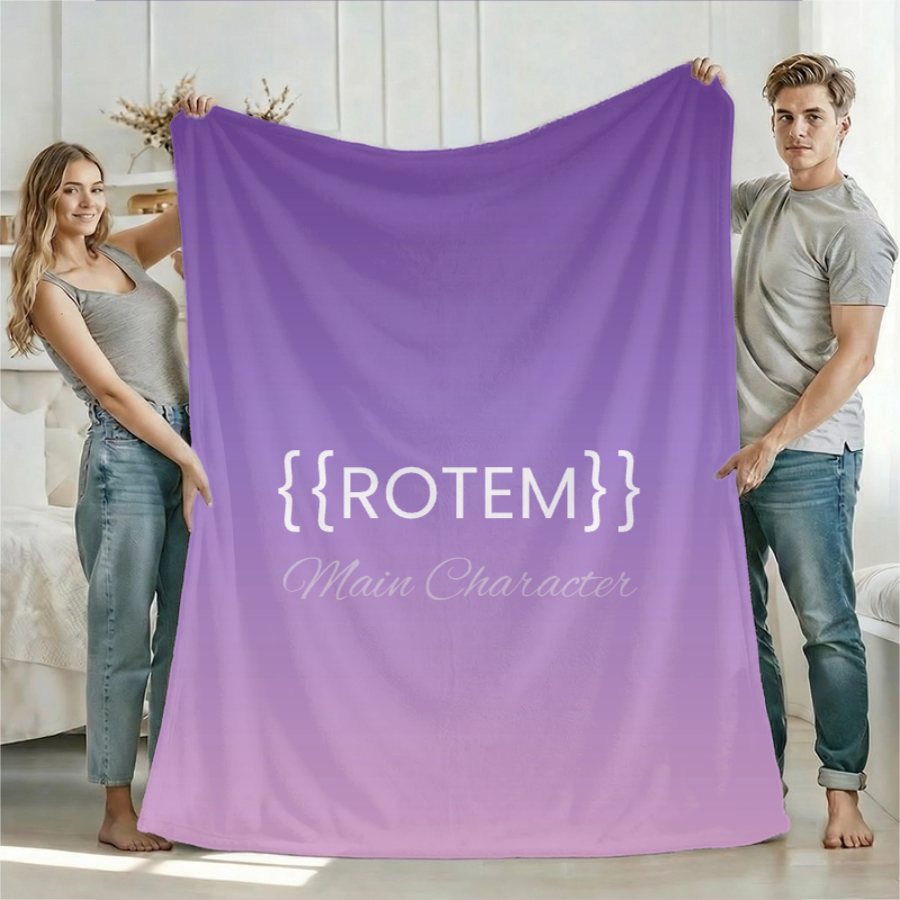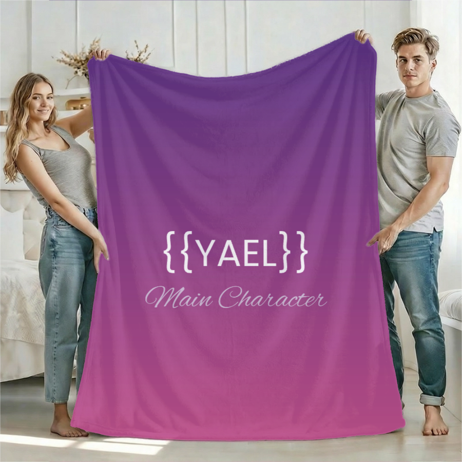 שמיכת מינקי רכה בעיצוב אישי רקע גראדיאנט עם שם גדול במסגרת מודרנית ומשפט עוצמה לבחירה. הזינו שם, בחרו מילה כמו Queen, או Main Character, וקבלו מתנה ייחודית, אישית ומלאת נוכחות, מושלמת ליום האישה או כהפתעה מרגשת לכל אישה מיוחדת. הזמנה אונליין פשוטה, ייצור בישראל ואספקה מהירה | גודל שמיכה 130x170