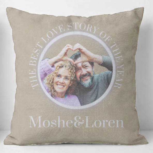 כרית בעיצוב אישי LOVE STORY – גוון ניוד מודרני (בז' פרימיום)